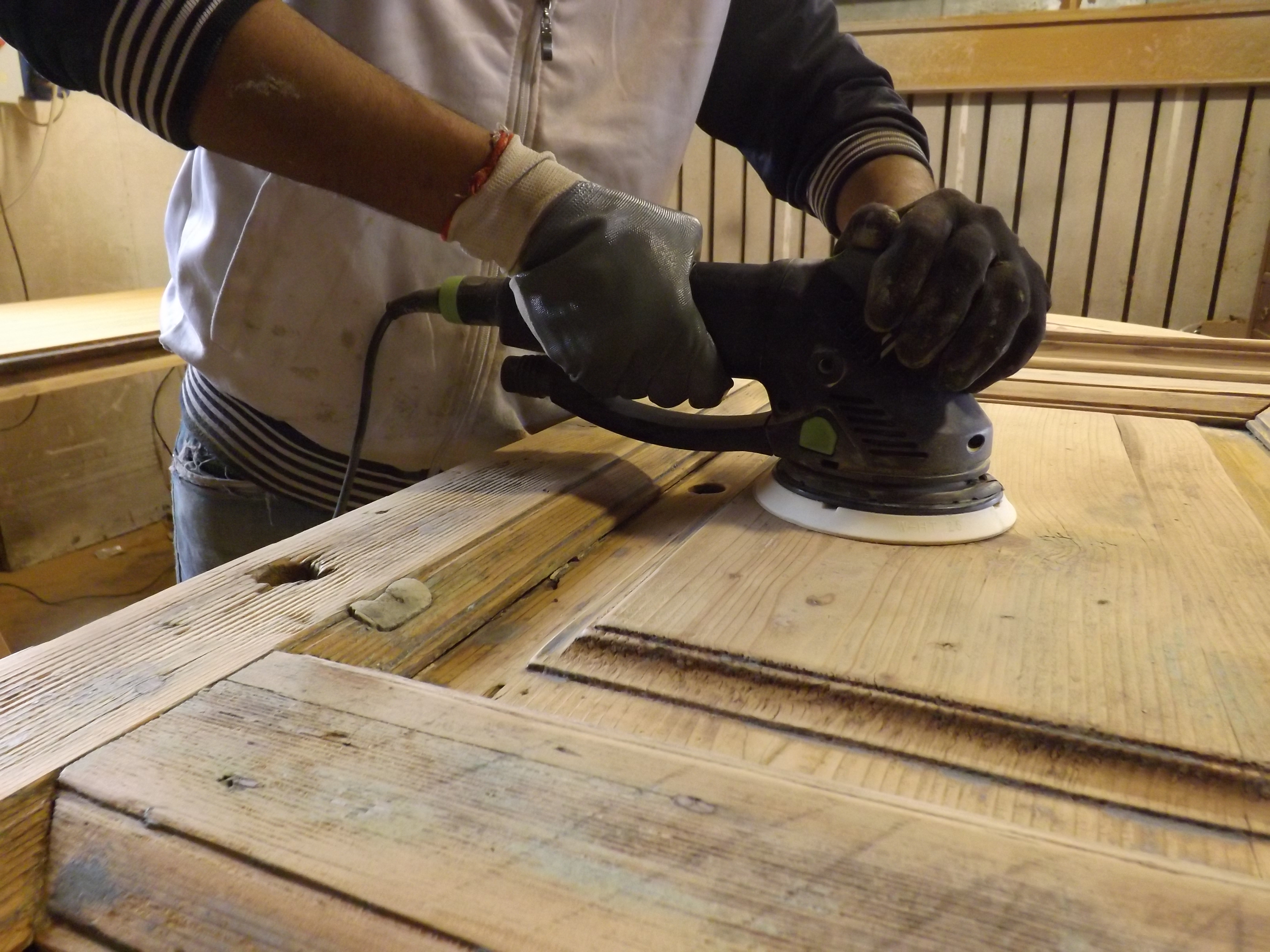 Il carteggio che avviene con carte abrasive di ottima qualità (Mirka) e di varie grane via via maggiori sino alla spazzolatura sia manuale che automatica a seconda del manufatto in lavorazione.
